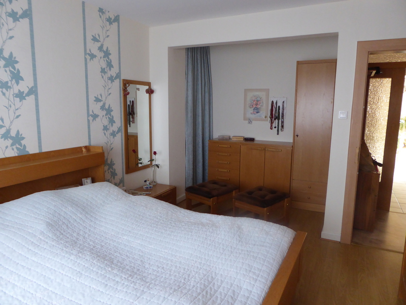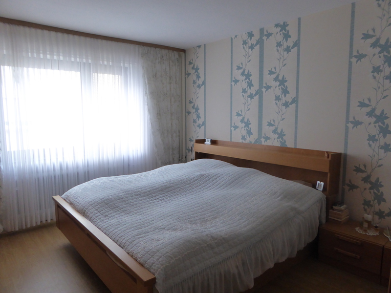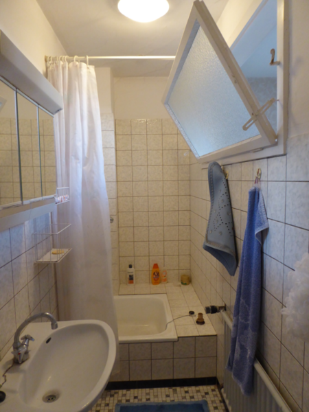 ein Schlafzimmer, die geräumige Küche mit Einbauküche, kleine Speisekammer, ein Badezimmer mit Wanne und Dusche, sowie