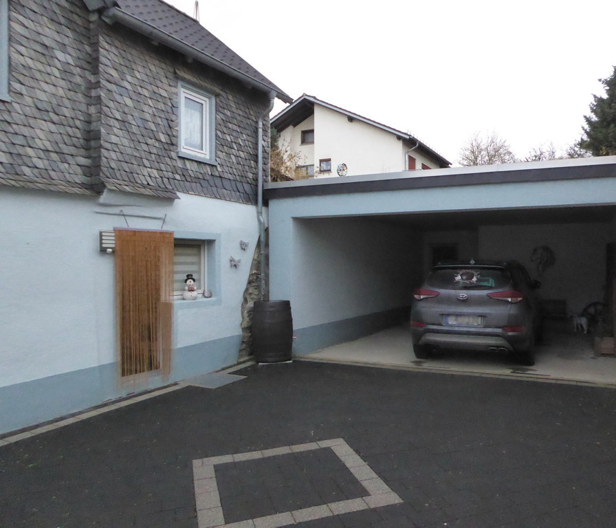 vorderen Bereich gepflastert. Durch die Doppelgarage gelangt