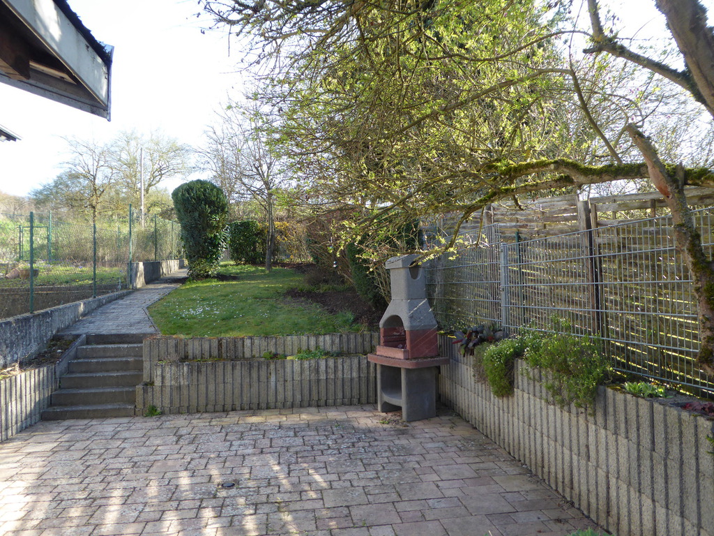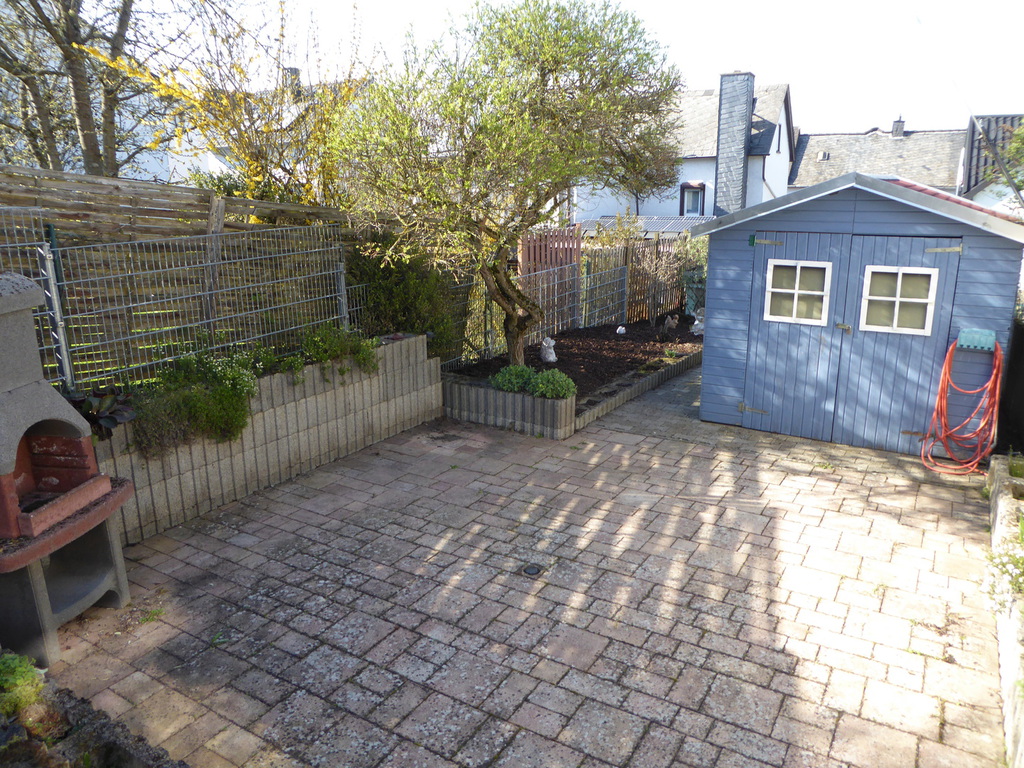Eine gepflasterte Terrasse lädt zum Verweilen ein und für Garten-
