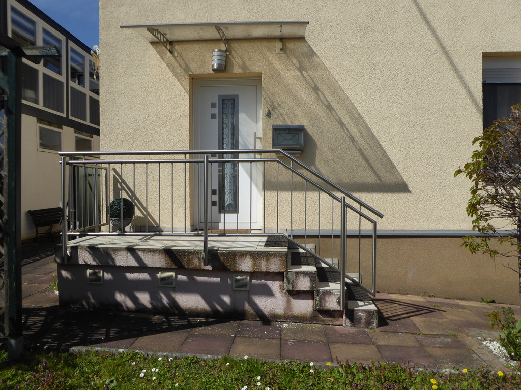 Hinter dem Haus gibt es eine Terrasse mit Zugang zum Neben-