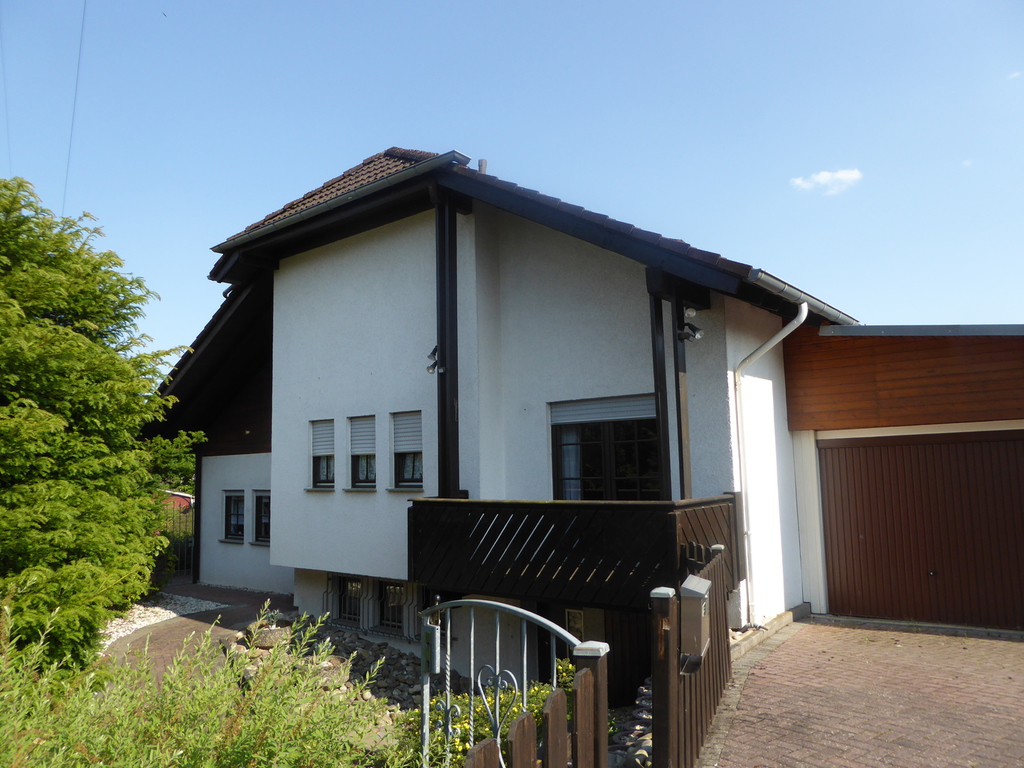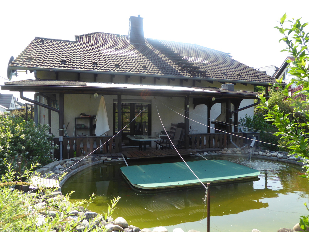 Das 1987 in Massivbauweise erstellte Gebäude befindet sich am Ende einer kleinen Anliegerstraße in absolut ruhiger Wohnlage. Das wunderschön angelegte Grundstück ist komplett eingezäunt und hat eine Größe von