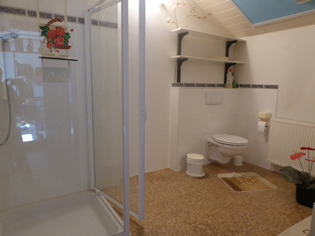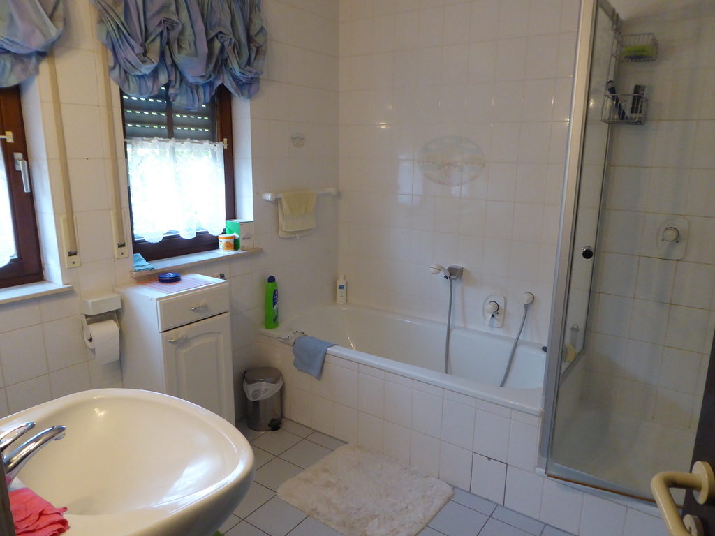 ein Gäste-WC, ein Flur und ein Tageslichtbad mit Wanne und Dusche zur Verfügung.