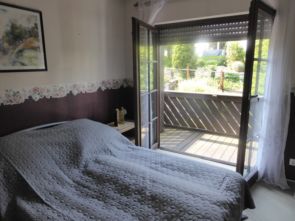 Auf der seitlich versetzten Ebene stehen 3 Schlafzimmer – 1 x mit Balkon -,