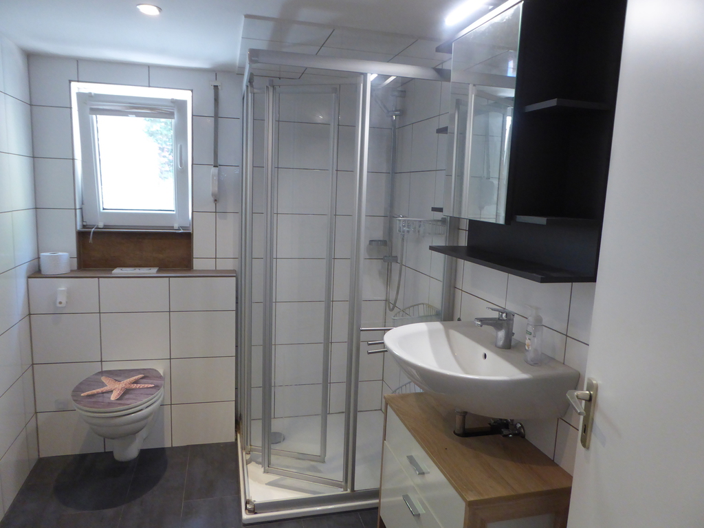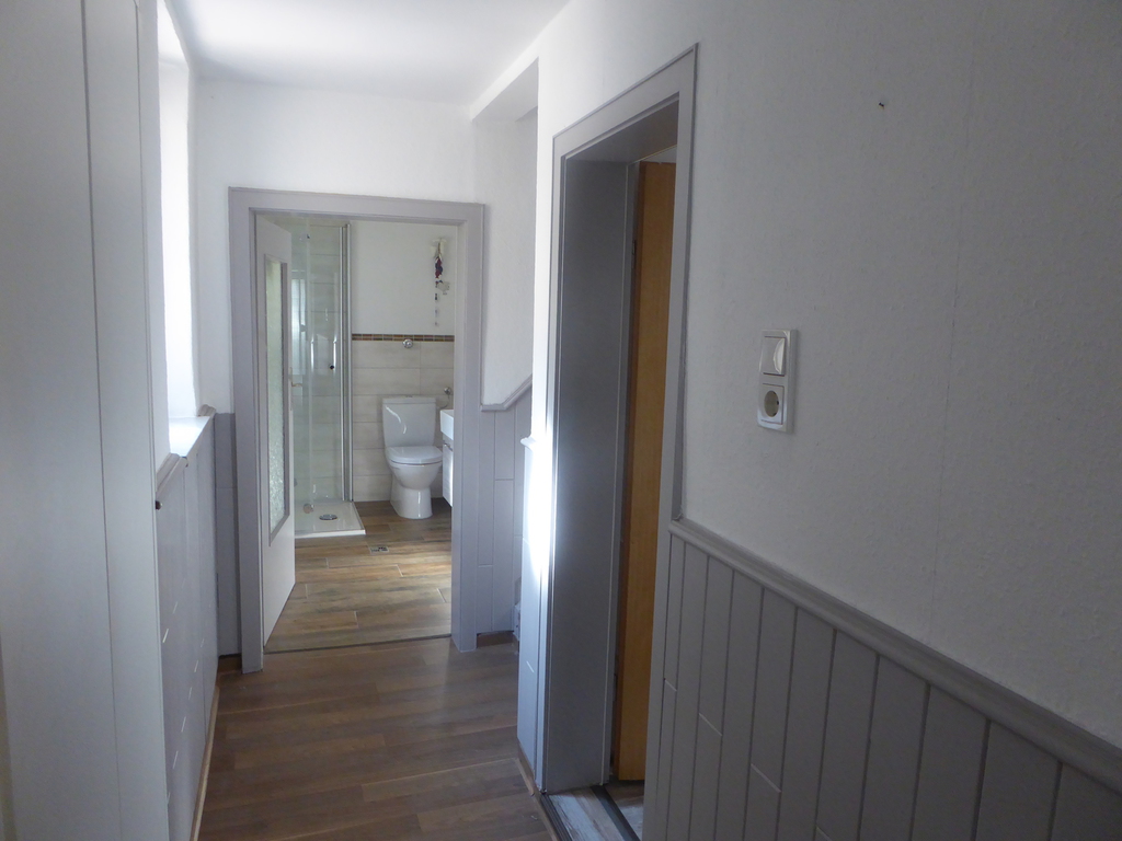 Erdgeschoss: Flur, großer Wohn-/Essbereich, Küche, Duschbad