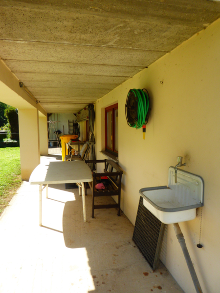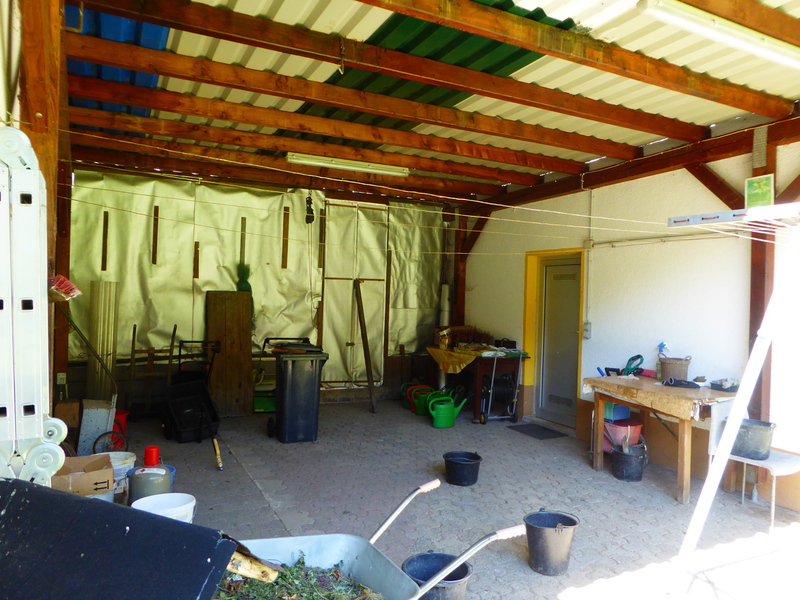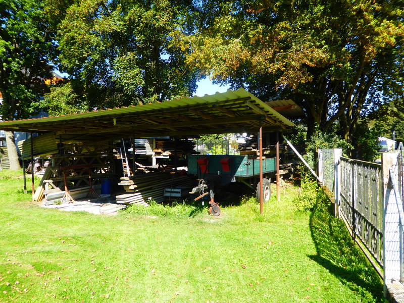 Auf dem 1.230 m²großen Grundstück steht neben dem Wohnhaus noch ein geräumiger Carport mit Zugang zum Keller und ein kleiner Unterstand zur