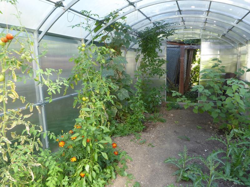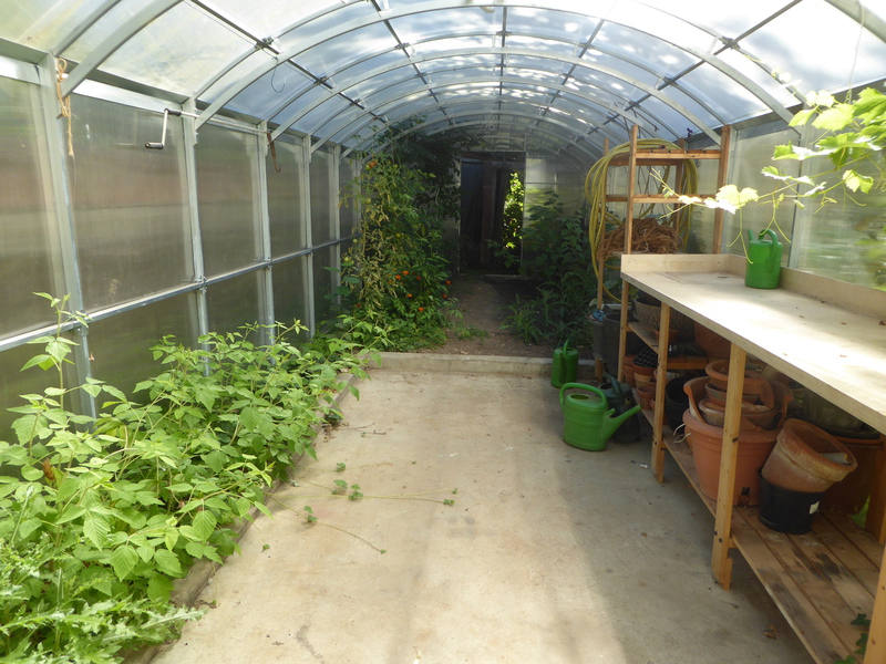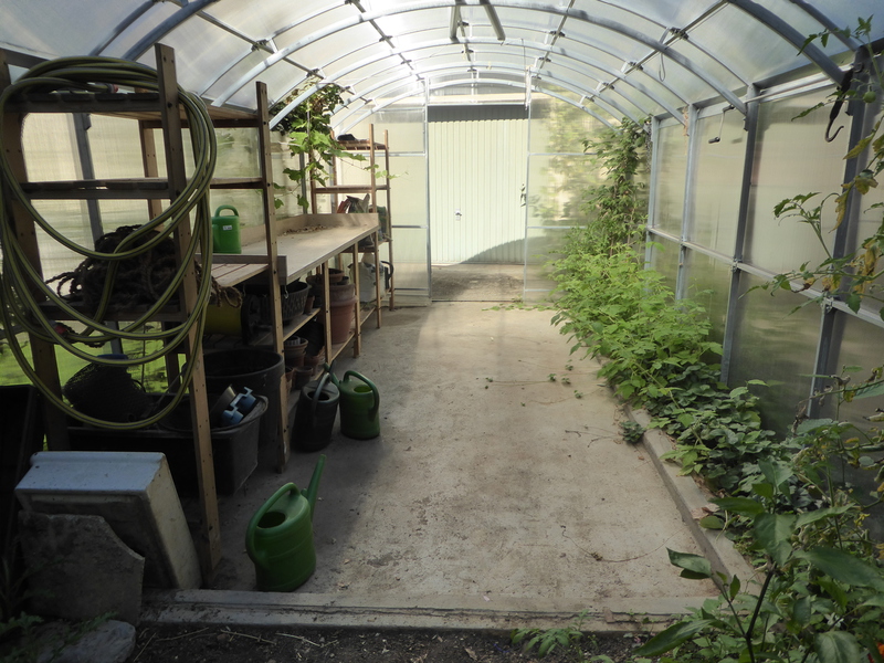 Blumen. Für Hobbygärtner gibt es ein großes Gewächshaus. Eine Garage