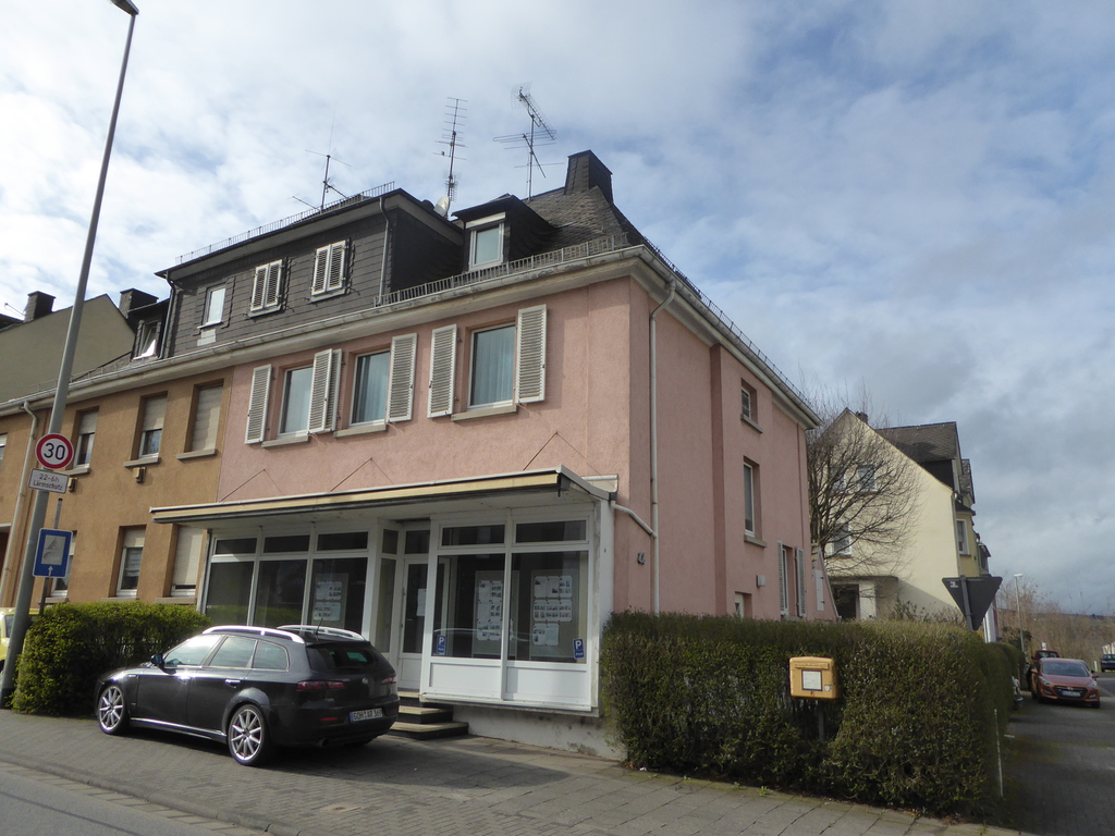 Bei der Immobilie handelt es sich um die Hälfte eines 1926 in Massivbauweise errichteten Doppelhauses mit einer Gewerbeeinheit im Erdgeschoss und einer großzügigen Wohnung über 2 Ebenen im Ober- und Dachgeschoss.