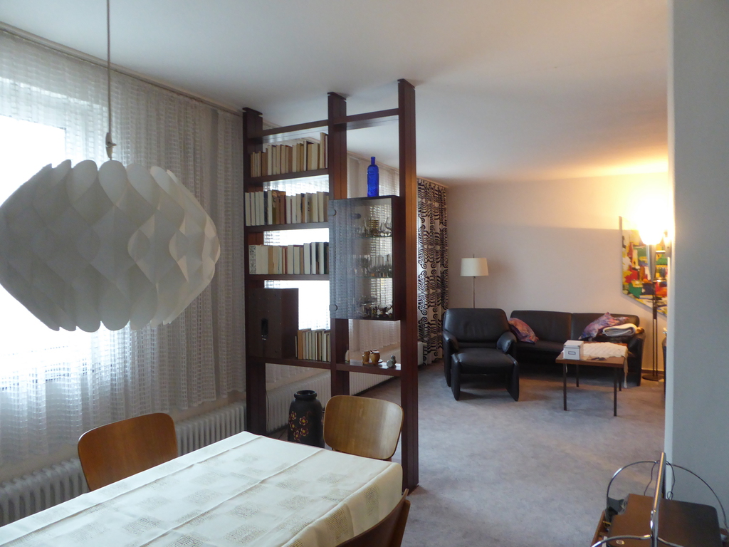 Im Obergeschoss befindet sich der ca. 34 m² große Wohn-/Essbereich, die gemütliche Wohnküche, ein Schlafzimmer mit Balkon und ein Wannenbad im Charme der 60er Jahre.