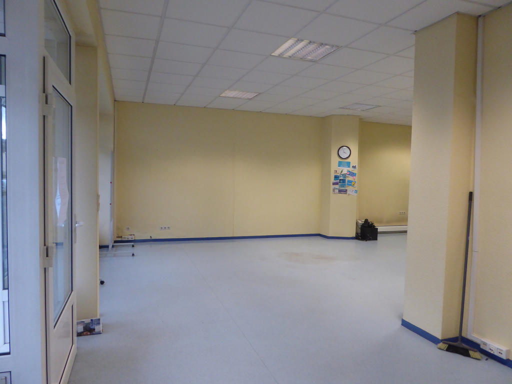 Der Eingang zu den Gewerberäumen liegt direkt an der Straße. Die zuletzt als Büro genutzte Gewerbeeinheit verfügt über insgesamt rd. 71 m² Nutzfläche, eine ca. 7 m lange Schaufensterfront sowie zwei unmittelbar vor dem Gebäude befindliche Stellplätze. Der großzügige Innenraum hat eine Größe von ca. 57 m². Hinzu kommt ein separates Zimmer mit ca. 11 m² und ein WC.