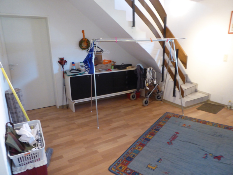 und einen Kellerraum, in dem sich die Wärmepumpe mit Puffer-speicher für die Warmwasserbereitung befindet. Von hier aus gibt
