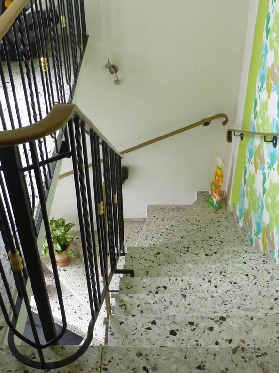 Über eine Bodeneinschubtreppe in der Wohnung gelangt man zum Dachboden, der gemeinsam mit dem Bewohner der Erdgeschosswohnung genutzt wird.