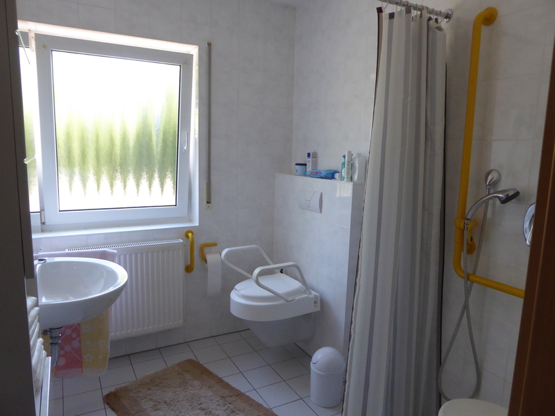 halten), ein Schlafzimmer, ein großes, barrierefreies Badezimmer