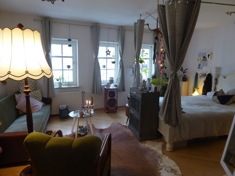 Durch die liebevolle Einrichtung der derzeitigen Bewohner, die das Wohnzimmer aus Platzgründen zur Zeit auch als Schlafbereich