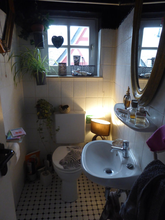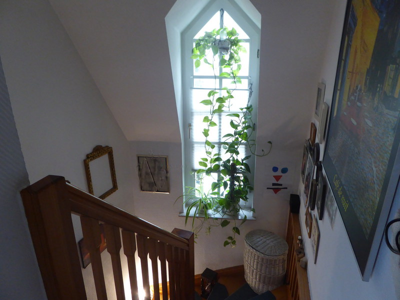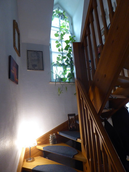 Gäste-WC. Eine massive Holztreppe führt ins Dachgeschoss mit