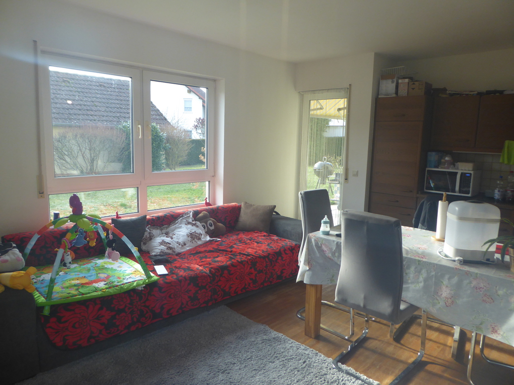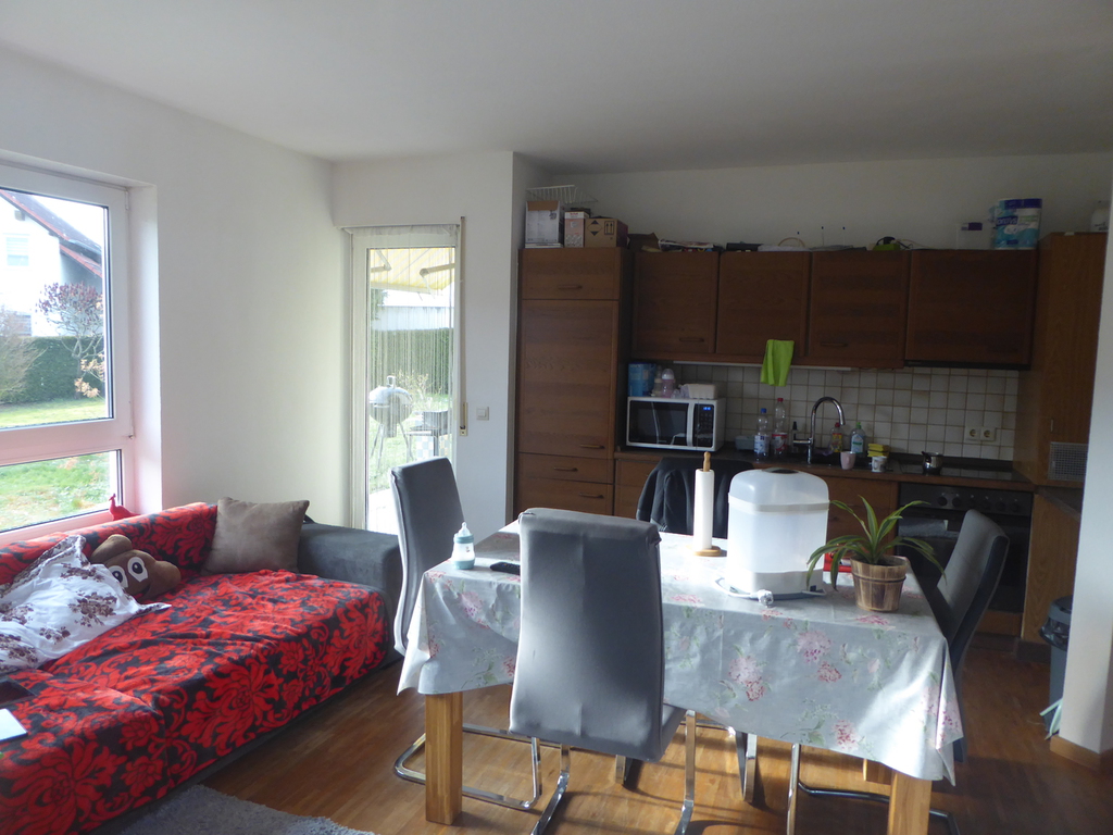 Die im Gartengeschoss eines 1991 erbauten 6-Familienhauses liegende Wohnung besticht durch das große lichtdurchflutete Wohnzimmer mit integrierter Küche und Ausgang zur Südterrasse. Der an die Terrasse angrenzende Garten kann gerne genutzt werden. Das gemütliche Schlaf-zimmer ist ebenso wie die anderen Zimmer und der geräumige Flur mit Echtholzparkett ausgestattet. Im Tageslichtbad mit Wanne ist die Wasch-maschine untergebracht und in dem Abstellraum ist Platz für die Vorräte.