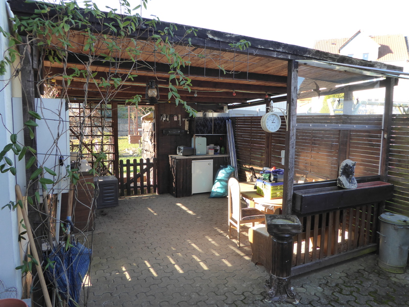 Neben dem Haus befindet sich eine gemütliche Pergola die auch
