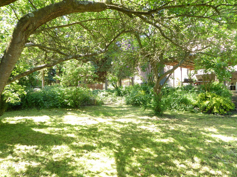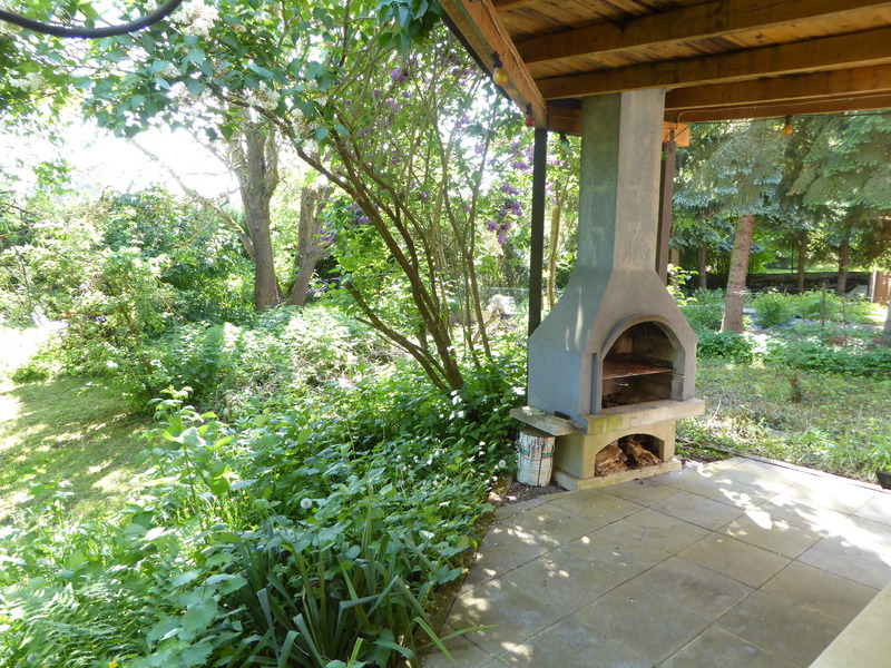 In dem großen Garten befindet sich eine überdachte Terrasse und