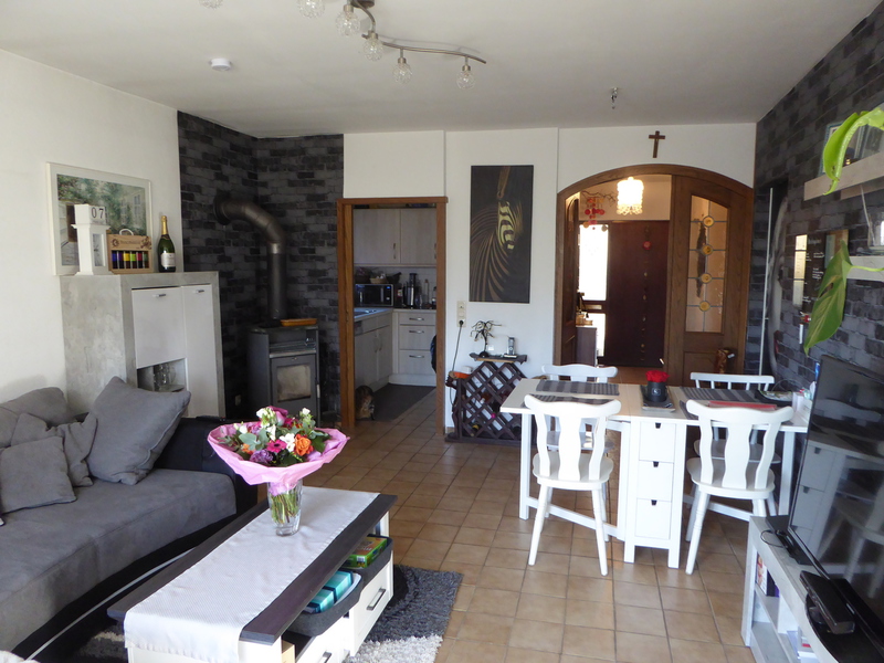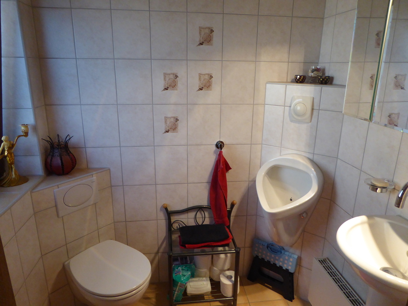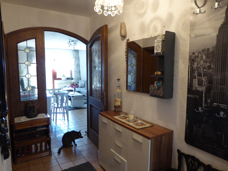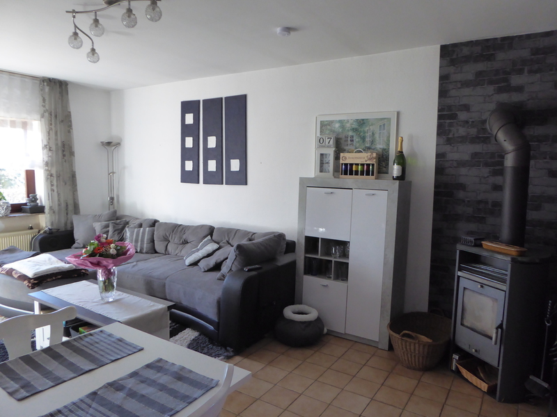Das Erdgeschoss bietet einen geräumigen Wohn-/Essbereich mit direkt angrenzender Küche, ein Gäste-WC und einen Abstellraum. Der Wohn-/Essbereich wurde vom derzeitigen Bewohner durch