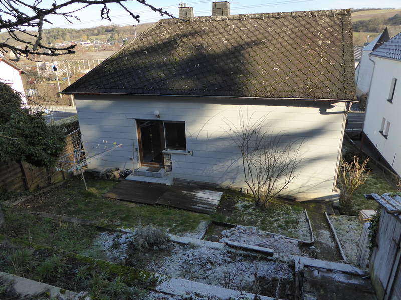 flächen; hinter dem Haus befindet sich die Terrasse. Der hang-