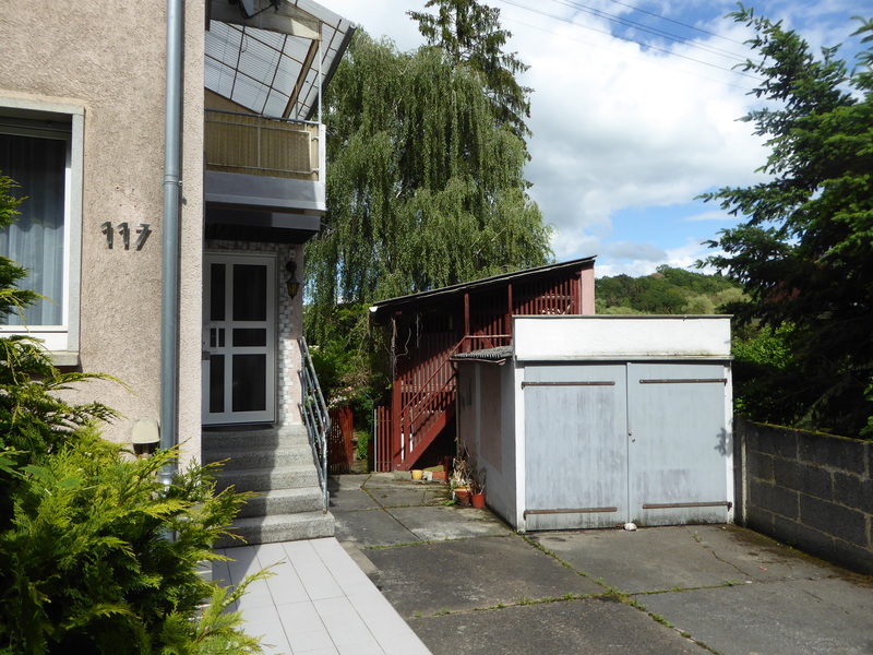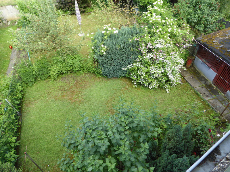Das 489 m² große Grundstück bietet einen Stellplatz im Hof, eine Garage, eine Remise und einen schön angelegten Garten, in