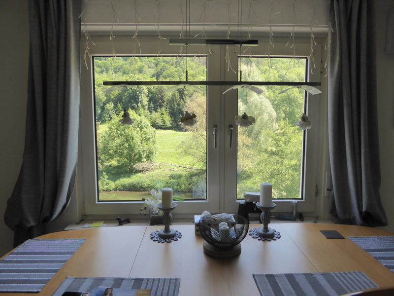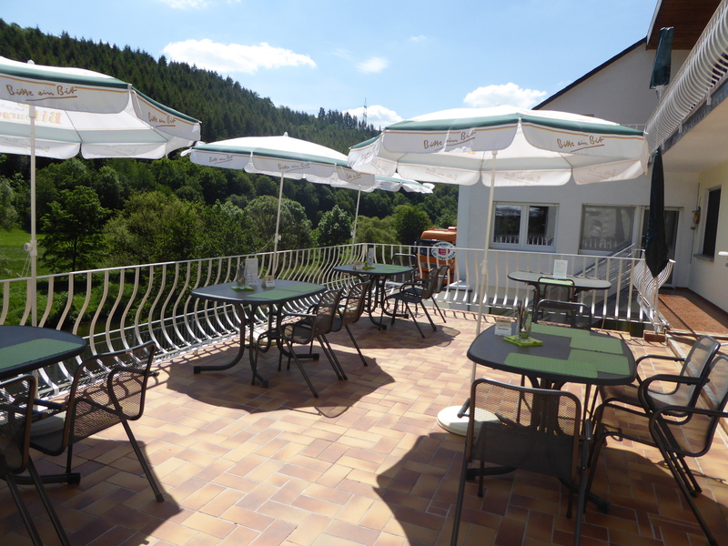 ca. 65 m² große Sonnenterrasse (mit eigener separater Außentreppe), die heute als bestuhlte Lahnterrasse bewirtschaftet wird und sehr gerne von Wanderern und Radfahrern zum Verweilen genutzt wird. Von hier aus hat man einen traumhaften Blick über die Lahn und zu den gegenüberliegenden Wiesen und Wäldern.