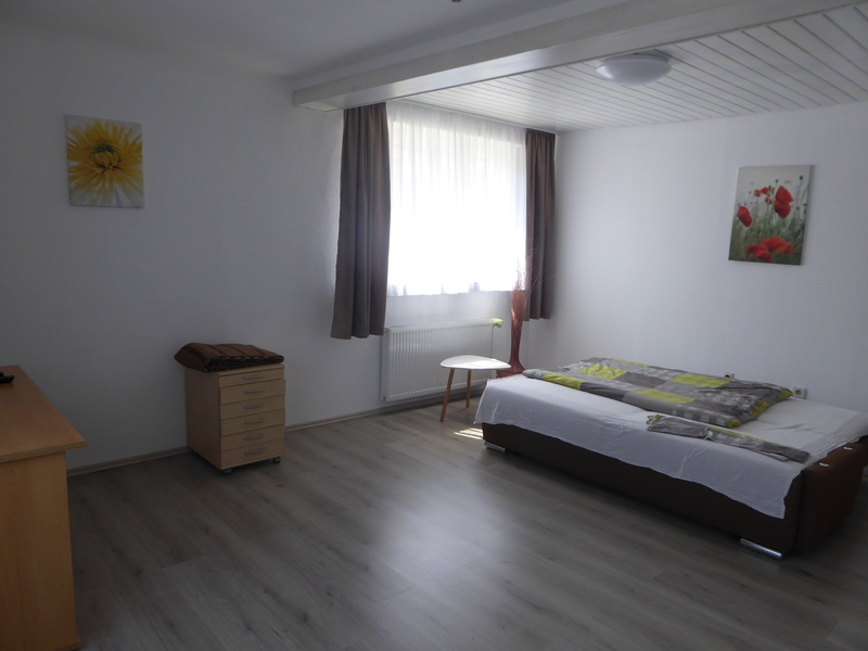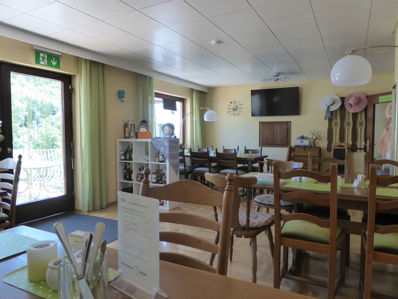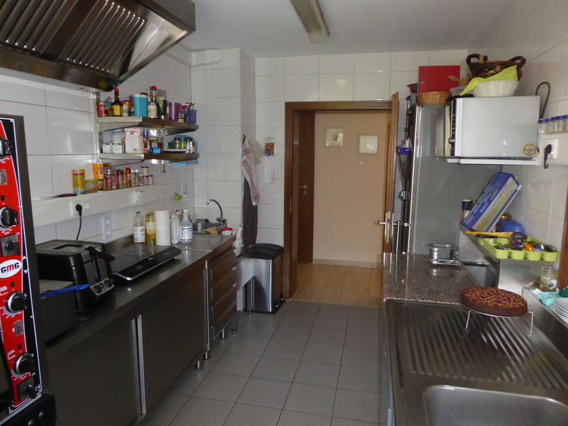 Im 1. Obergeschoss ist ein schönes großes Wohn-/Esszimmer mit Ausgang zur Sonnenterrasse entstanden, das zur Zeit als Frühstücksraum bzw. Bistro genutzt wird. Die großen Fensterflächen lassen viel Licht in den schönen Raum, der derzeit Platz für ca. 25 Gäste bietet und auch gerne für Familienfeiern gebucht wird. Die 2015 neu eingebaute Küche ist aufgrund flexibler Kochfelder auch für größere Gästezahlen ausreichend dimensioniert. Die Küche inkl. allem Inventar ist in dem Angebot enthalten.