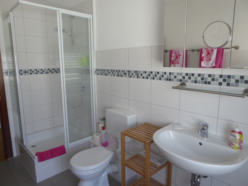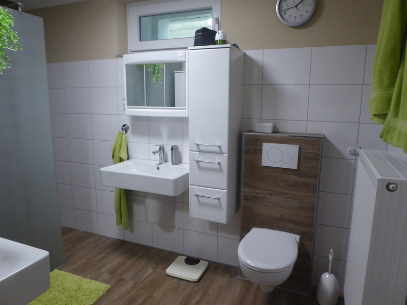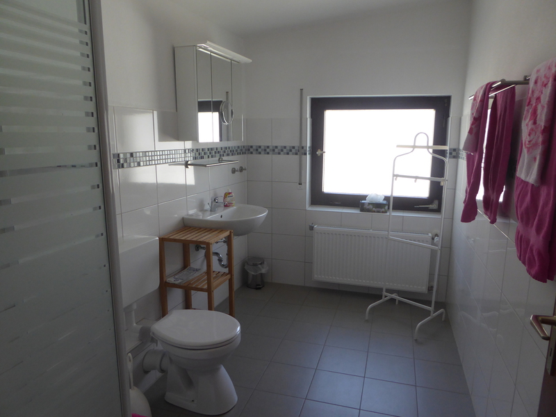 Im Untergeschoss ist ein Ferienapartment mit einer Größe von ca. 67 m² untergebracht. Es verfügt über einen Wohn-/Schlafbereich, eine sehr geräumige Wohnküche mit Essplatz, ein Baderzimmer und eine Diele. Das WC und die bodengleiche Dusche sind durch eine Leichtbauwand getrennt.