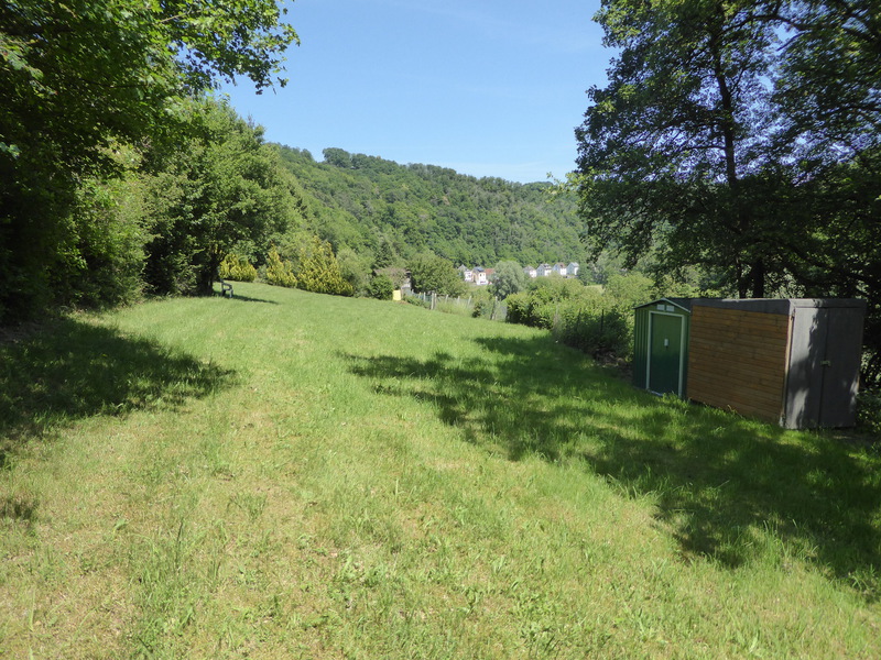 Von dieser Ebene aus gelangt man zu dem Grundstücksteil hinter den Häusern. Hier gibt es noch diverse Sitzgelegenheiten. In diesem Bereich befindet sich eine Steintreppe, die zu einem separaten Grundstück auf einem Plateau oberhalb der Häuser führt. Hier stehen knapp 1.000 m² ebene Grünfläche zur Verfügung, die auch über einen Wirtschaftsweg direkt angefahren werden kann.
