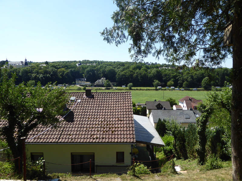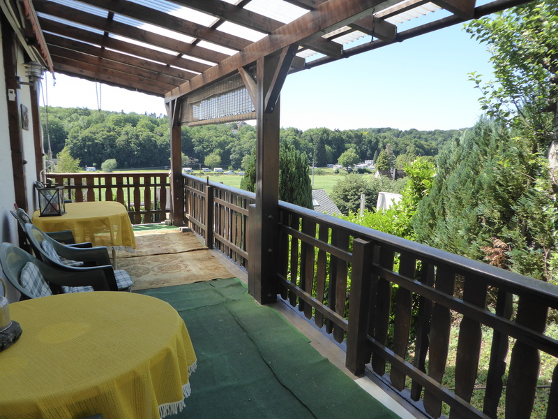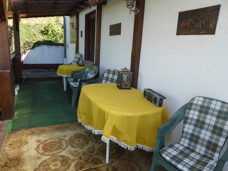 einer Terrasse und eine kleine Wiese. Von hier aus ist der Blick