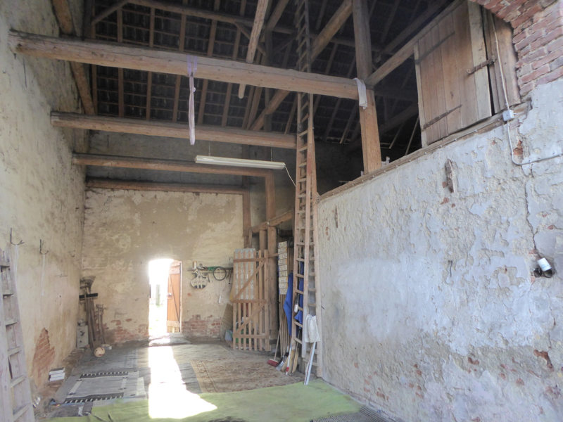 Die ebenfalls mit Backsteinen erstellte Scheune verfügt über eine