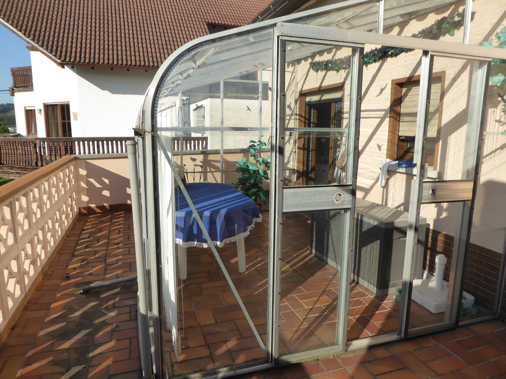 mittels einer Alu-Glas-Konstruktion in eine Art Wintergarten umgestaltet