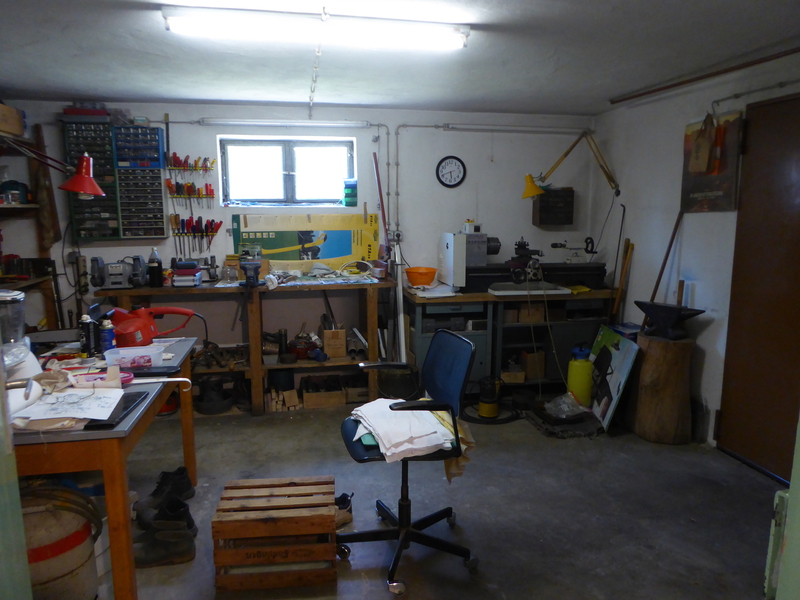 einem Vorratskeller gibt es hier eine Werkstatt mit Ausgang zum Garten.