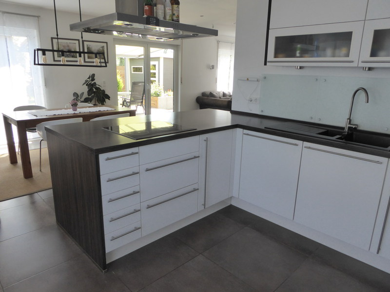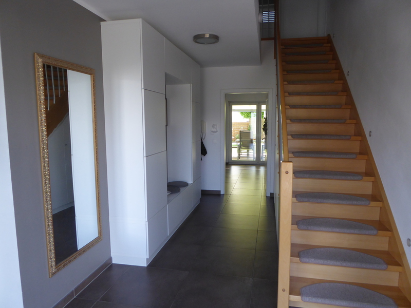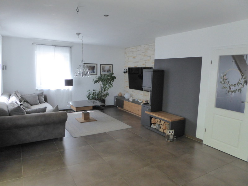 Die hochwertige Einbauküche ist ebenso im Preis enthalten, wie die auf Maß eingebauten Schränke unter der Treppe und der Kaminofen im Wohnzimmer.
