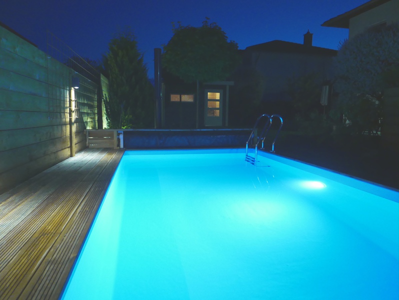 man abends beleuchten kann) mit Sonnenterrasse und ein nagelneues Saunahaus mit Fenster zum Pool.